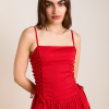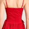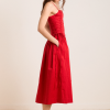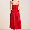 Meet the Angelina Midi Dress in red. Cut from crisp 100% organic cotton, its voluminous skirt silhouette is balanced by delicate spaghetti straps and a fitted bodice. Featuring side seam pockets for convenience, it’s a timeless piece designed to be worn for any occasion.