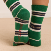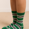 Meet our signature calf length socks in green stripe print. Crafted from 75% organic cotton, 23% recycled nylon, and 2% elastane, offering a perfect blend of comfort, durability, and a touch of stretch. The soft, organic cotton ensures a gentle feel against the skin, while the nylon and elastane contribute to enhanced flexibility and shape retention.