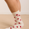 Meet our signature calf length socks in white and red polka dot print. Crafted from 75% organic cotton, 23% recycled nylon, and 2% elastane, offering a perfect blend of comfort, durability, and a touch of stretch. The soft, organic cotton ensures a gentle feel against the skin, while the nylon and elastane contribute to enhanced flexibility and shape retention.