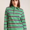 Our best-selling rugby has been reimagined in a new shrunken fit. The Cassia Shrunken Rugby in green stripe fuses traditional sporty style with a modern silhouette. Made from 100% organic cotton, it features a button placket and woven collar. Finished with our signature DM embroidery detailing on the front.