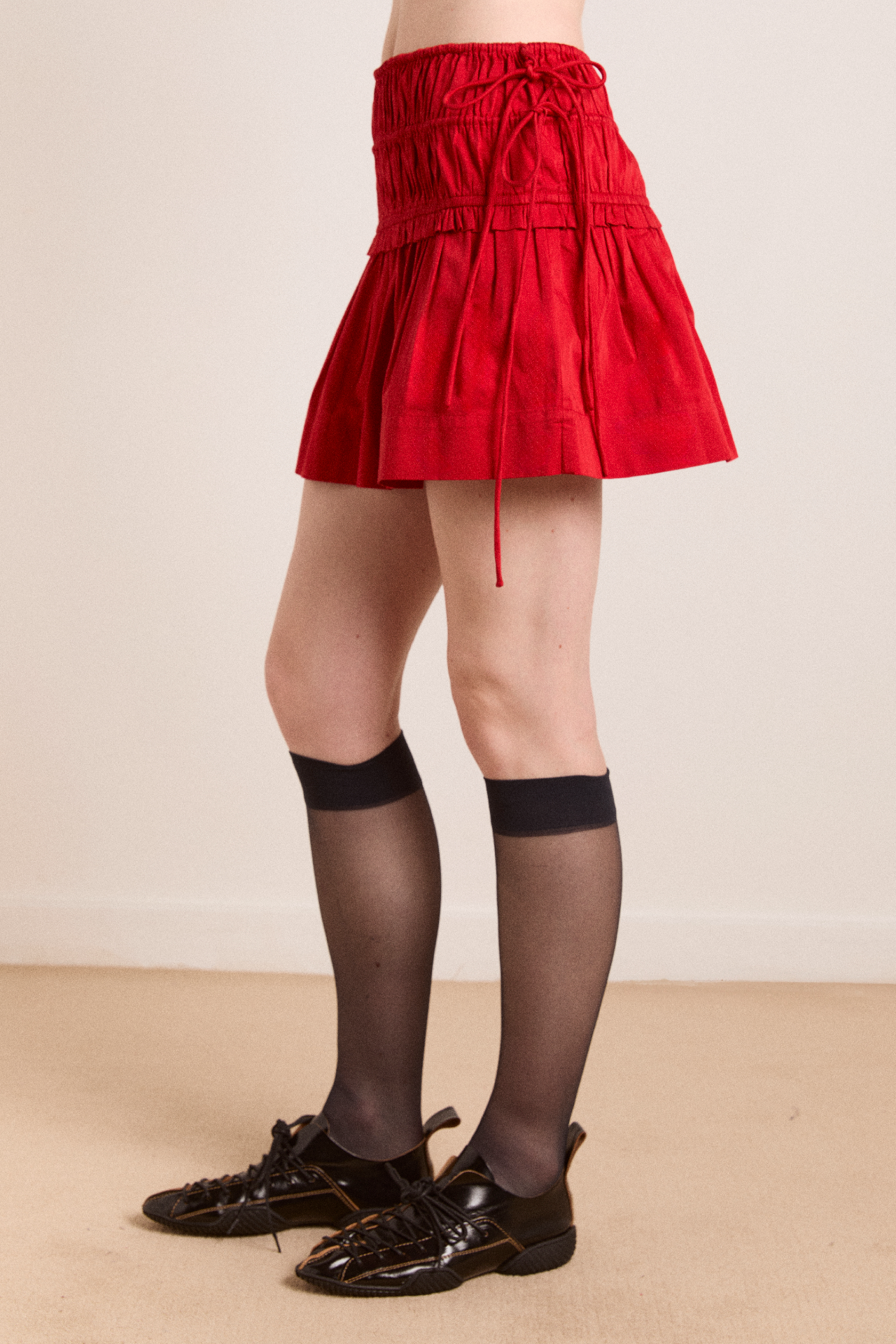 Cherry red perfection, our Charli Mini Skirt is this season’s stand-out style. Crafted from 100% organic cotton, featuring a drop waist with functional tie detailing. Wear with our matching Suri Shirred Blouse for ultimate impact.