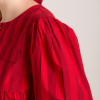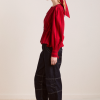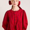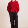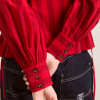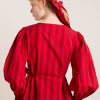 Meet the effortlessly wearable Charlize Blouse. Crafted from 100% organic cotton in a striking red stripe, this blouse features a button up front with a flattering neckline, oversized sleeves and front pocket detailing. Adjustable ties provide the option to bring structure to the silhouette. Matching accessories available.