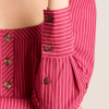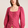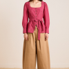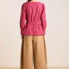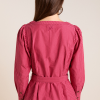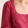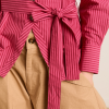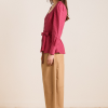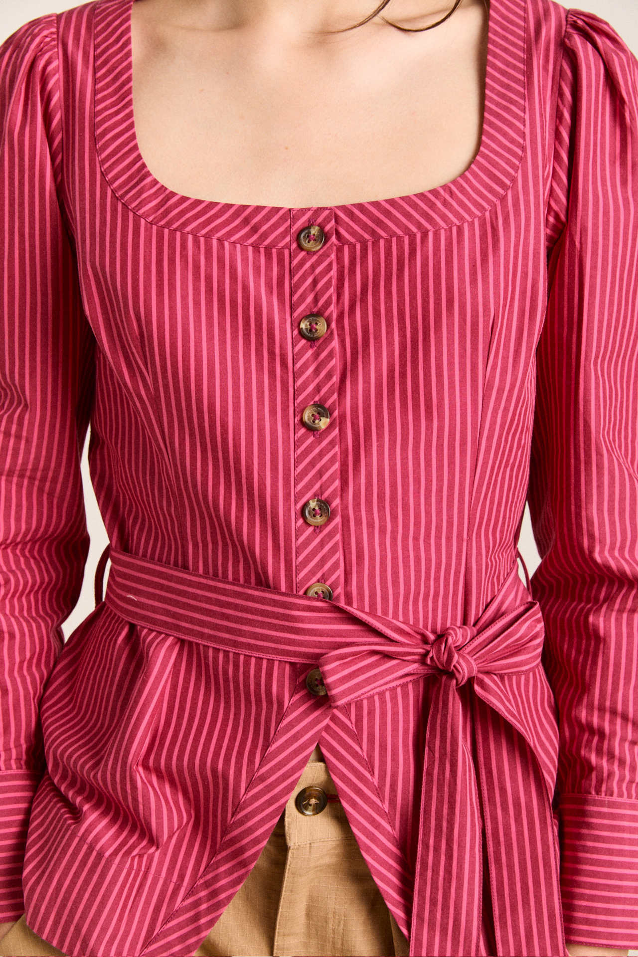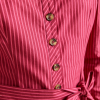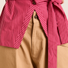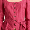 Meet the effortlessly wearable Clare Blouse. Crafted from 100% organic cotton in a striking berry business stripe, this blouse features a button up front with a flattering square neckline, and a removable belt to bring structure to the silhouette.