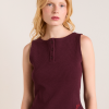 A fresh take on everyday comfort, the Hattie Waffle Cami in burg features a soft boat neck, mini button placket, and a flattering sleeveless fit. Finished with a playful ruffle hem, this organic cotton blend piece pairs perfectly with the matching Piper Waffle Jogger.