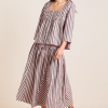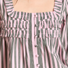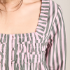 Elevate your look with the Leilani Blouse in garden tulle stripe. Crafted from 100% organic cotton, this blouse features a square neckline, detailed with ruffles, for a vintage-inspired, feminine feel. Complete with an A-line silhouette and flowy 3/4 sleeves, this blouse is effortless and perfect for any occasion. Pair with our matching Layla Godet Mini Skirt for a head to toe look.
