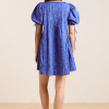 Elevate your summer style with the Meri Mini Dress in blue paisley. Featuring puffed sleeves, a square neckline and ruffle detailing, it is a playful mix of vintage and modern flair. Pair with our matching bandana or scrunchie.