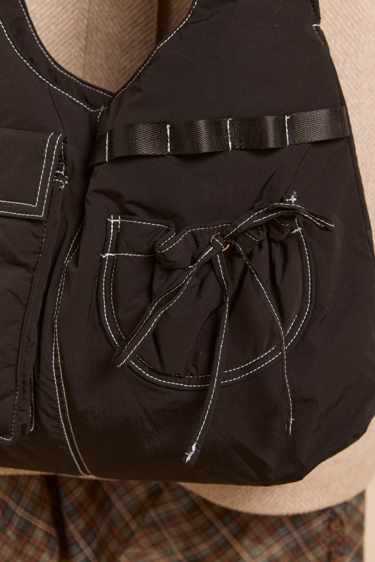 The Multi Pocket Roisin bag in black offers a slouchy style, with multiple pocket details. Designed to be worn comfortably on your shoulder, there’s plenty of room for all your daily essentials. 100% recycled polyester.