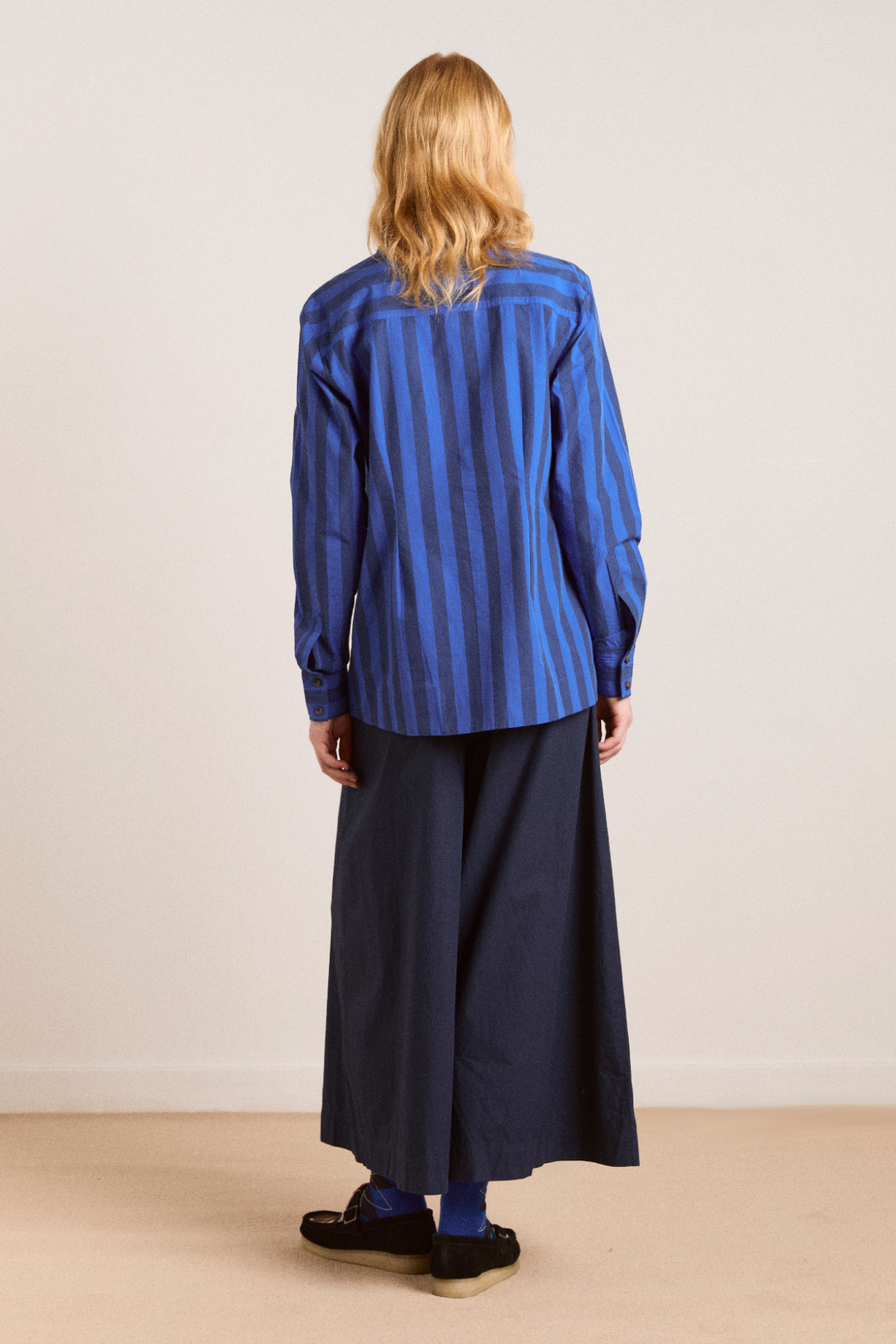 Oversized, structured and cropped, the Tatianna Culottes in navy are made from 100% organic cotton. Featuring a removable pocket, pleat detailing and custom DM embroidery on the back pocket, they are a timeless staple.