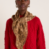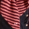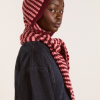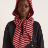 This 100% wool striped knit hood can be styled multiple ways – worn as a hood, tied at the front, or wrapped as a scarf. Finished with a contrast pink DM embroidery for a subtle branded detail.
