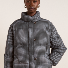 Damson Madder Women’s Reversible Opal Puffer – Navy & Check | Navy