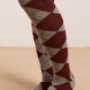Meet our signature knee length socks in grey/burg argyle. Crafted from 75% organic cotton, 23% recycled nylon, and 2% elastane, offering a perfect blend of comfort, durability, and a touch of stretch. The soft, organic cotton ensures a gentle feel against the skin, while the nylon and elastane contribute to enhanced flexibility and shape retention.