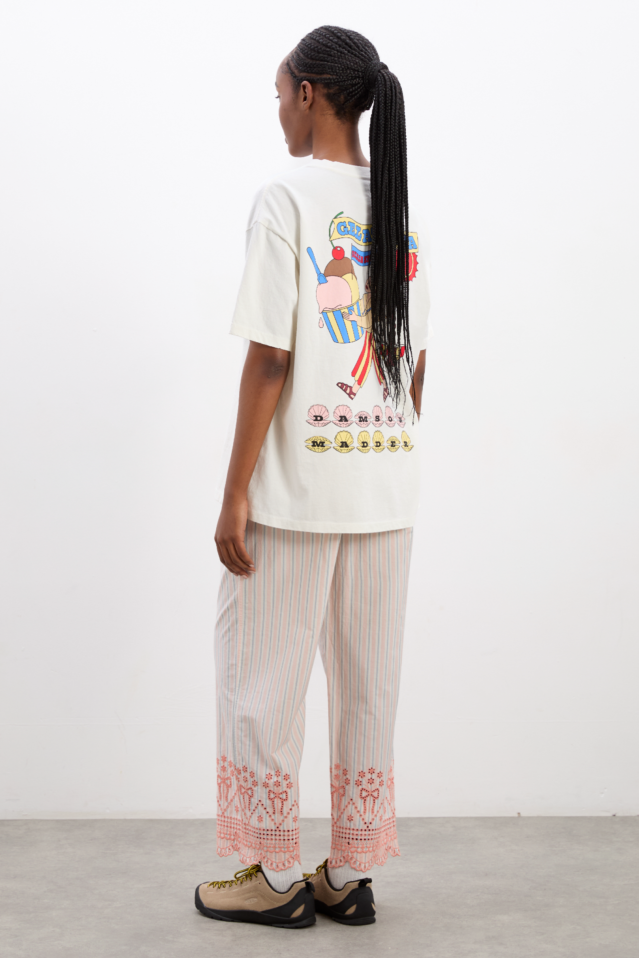 Damson Madder Women’s Leah Trousers – Apricot Business Stripe | Apricot