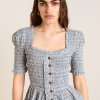 The Mansi shirred Blouse will see you through every season. Crafted from 100% organic cotton in our cloudy check print, she’s designed with puff shoulders and a shirred bodice for a silhouette that gives structure without compromising on comfort. The peplum hem is the perfect finishing touch on this fun and feminine blouse. Matching accessories available.