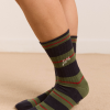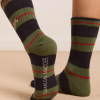 Damson Madder Women’s Ribbed Calf Length Socks -olive Multi Stripe | Multi
