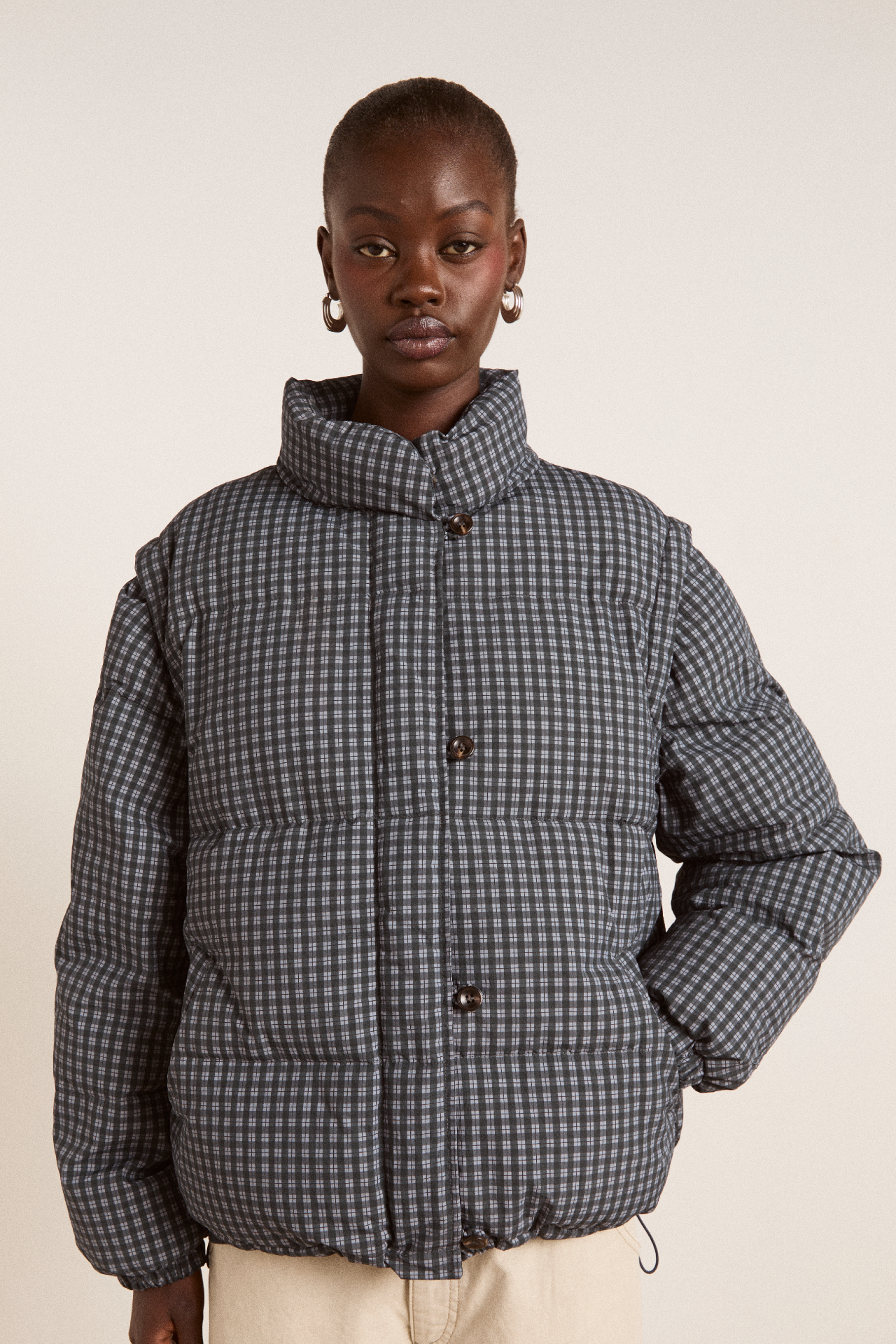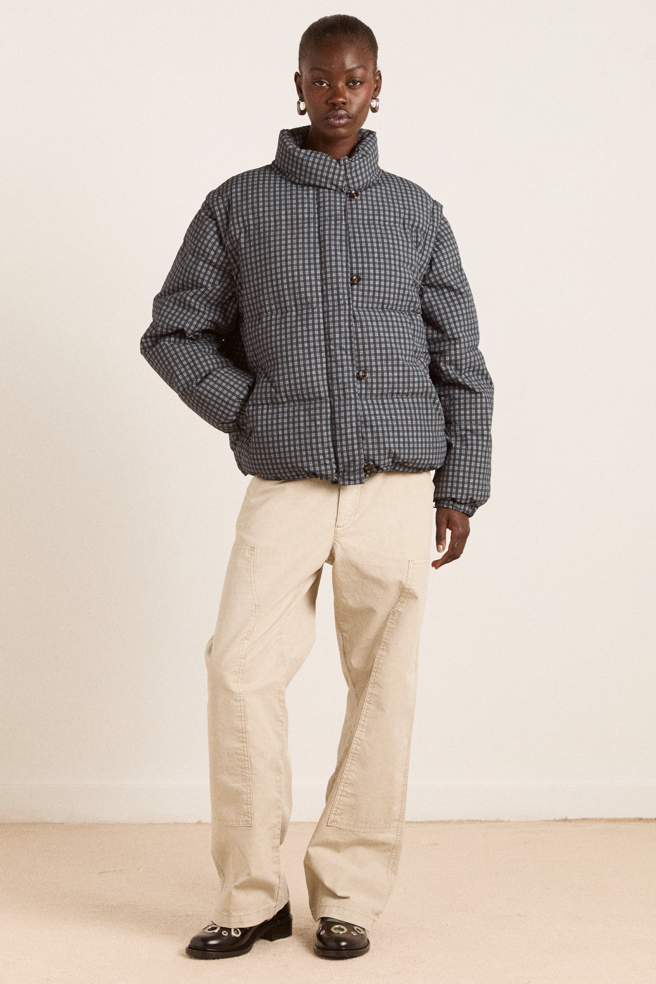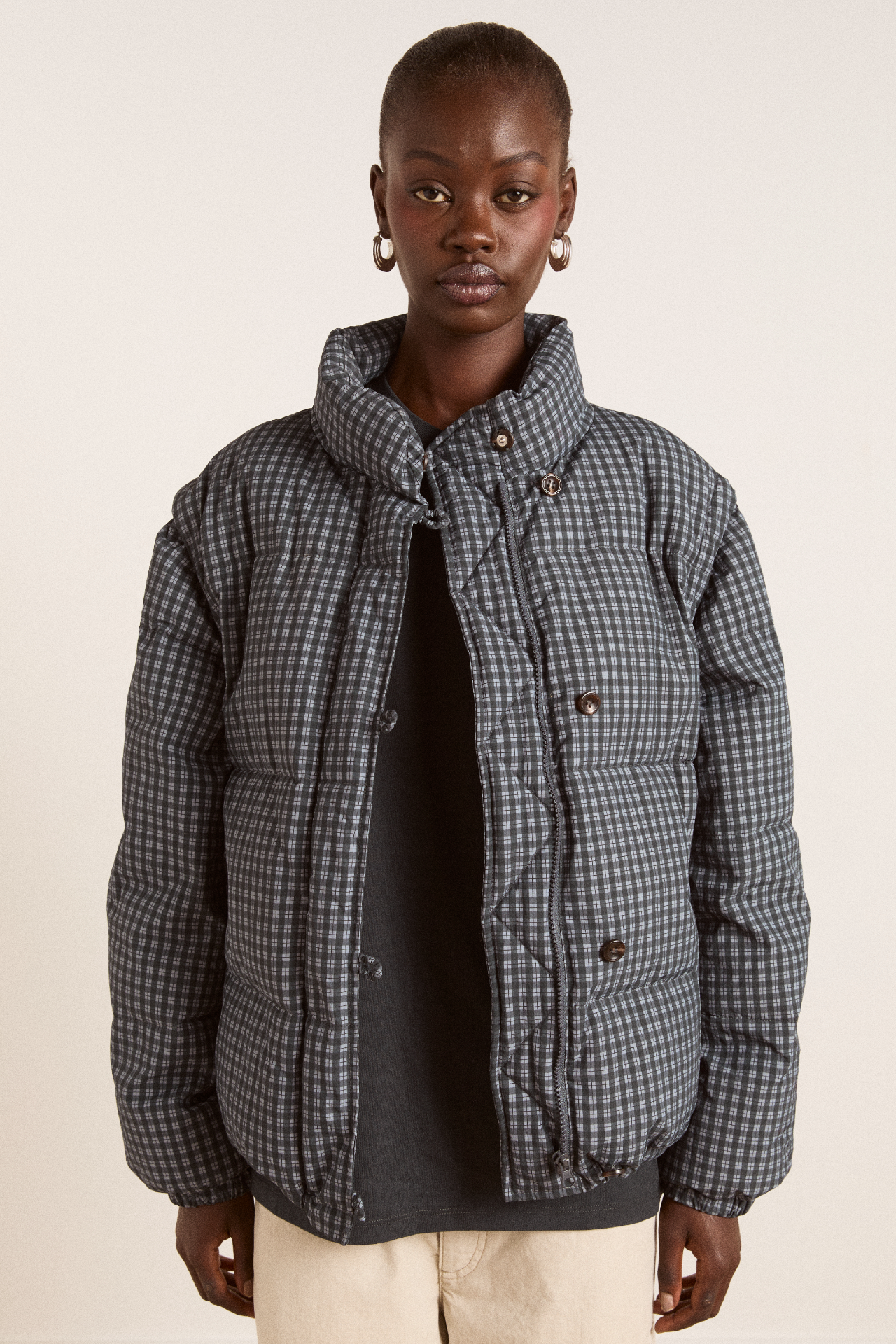 Damson Madder Women’s Pearl Check Puffer – Navy Gingham | Navy