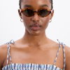 Meet our Slim Oval Sunglasses in tortoiseshell, with smoke lenses and a wavy arm with DM branding detailing. Our new Eyewear range is made from recycled acetate & features polarised lenses. Each style comes with an eco-friendly cork case, with recycled lining & cleaning cloth.